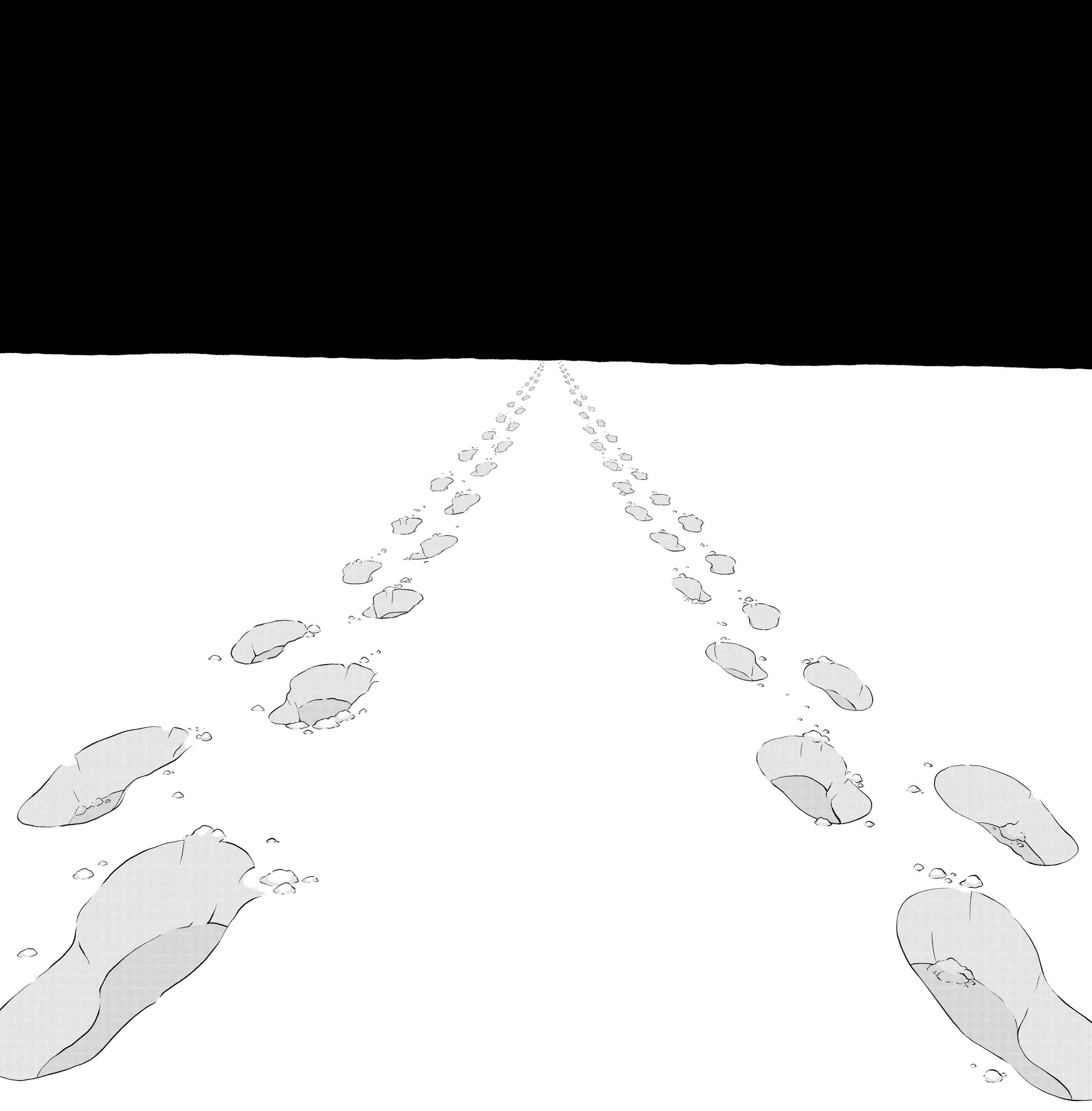 Two sets of footprints disturbed the otherwise untouched ground, extending far into the distance—beyond sight.